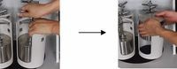 卸罐打開(kāi)機(jī)蓋,用手?jǐn)Q松兩角螺母,拿開(kāi)Y型絲桿、扁擔(dān)、墊片,取下球磨罐。