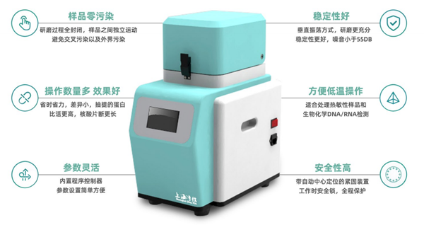 產(chǎn)品說(shuō)明:上海凈信®Tissuelyser®組織研磨儀是一種快速、高效率、多試管的一致系統(tǒng)。它能將任何來(lái)源(包括土壤、植物和動(dòng)物的組織/器官、細(xì)菌、酵母、真菌、孢子、古生物標(biāo)本等)的原始DNA、RNA和蛋白質(zhì)進(jìn)行提取和純化。 支持干磨、濕磨及低溫研磨,封閉式操作,有效避免了交叉感染和外界污染,使研磨的樣品更加充分、均勻、重復(fù)性更好等特點(diǎn)。